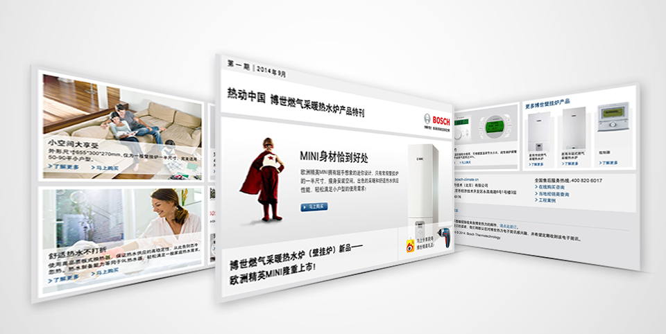 博世熱力技術有限公司是世界領先的室內節能暖通空調系統和舒適生活熱水優質供應商。2014年,博世熱力正式攜手藍媒體,進行EDM設計制作服務。服務內容包含有EDM整體策劃、視覺創意、技術開發、用戶體驗研究等。嚴謹而不古板的設計風格,是博世選擇藍媒體的初衷,出色的項目制作能力和伴隨式的服務是博世認可并持續合作藍媒體的理由。