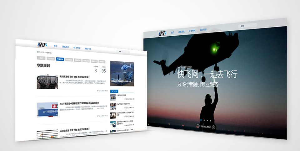 快飛是依托中船電子科技有限公司旗下全資子公司,主要為用戶提供通航在線預定服務,傳播業內最新政策與資訊,深度解讀行業相關技術,是國內首家在線飛行服務預定網站。2014年藍媒體從眾多競爭對手中脫穎而出,攜手快飛,打造新版官方網站并為其提供運營服務,藍媒體致力于為快飛打造中國最好的通航服務平臺,提升中國人的飛行品質,以高效、卓越、可靠的態度提供輕松、便捷的服務。藍媒體人的卓越服務和敬業精神獲得了快飛公司的認可,藍媒體人用出色的設計和技術打造出集通航查詢,預訂,航空服務展示的快飛官網也獲得了業內贊譽。